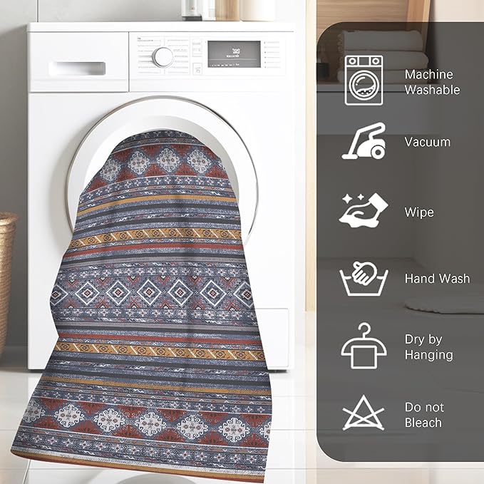 RUGSURE Washable Area Rugs, 2'6'' x 8' - 1/6 Thick - Stain & Water Resistant Non-Slip - Perfect Resistant Rug for Living Room, Bedroom, Nursery, Pet & Child Friendly, Vibrant Colors Rugs, Multicolor -