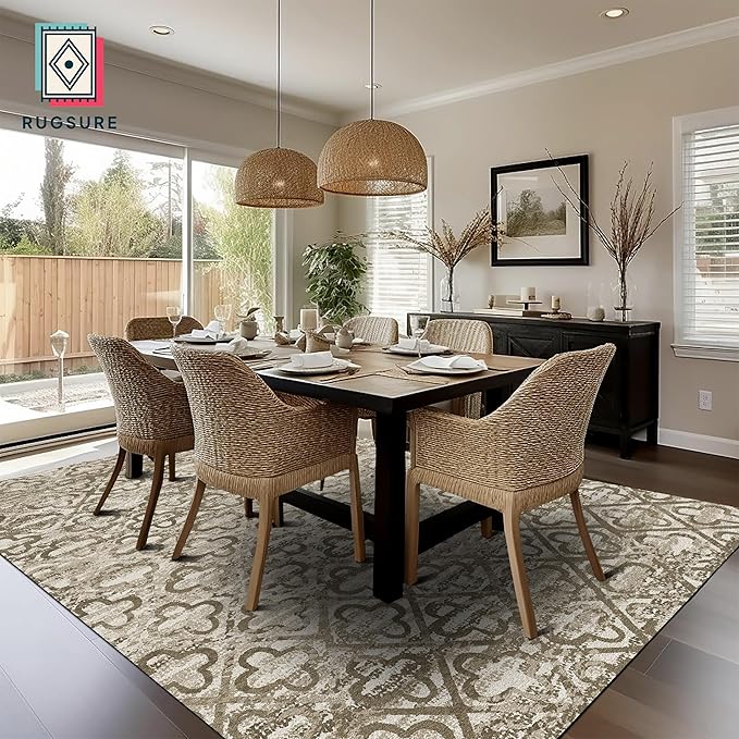 RUGSURE Washable Area Rugs 6' x 9' - 1/6 Thick - Moroccan-Inspired -Stain & Water Resistant Non-Slip - Resistant Rug for Living Room, Bedroom, Nursery, Pet & Child Friendly (Brown) -
