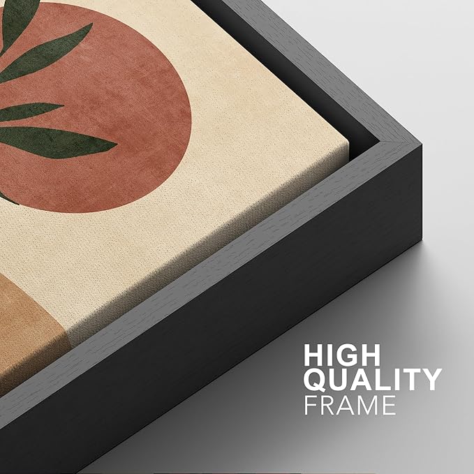 SIGNFORD Framed Canvas Print Wall Art Set Geometric Mid-Century Circle Plants Abstract Shapes Illustrations Modern Art Decorative Zen Bohemian for Living Room, Bedroom, Office - 16"x24"x2 Black -