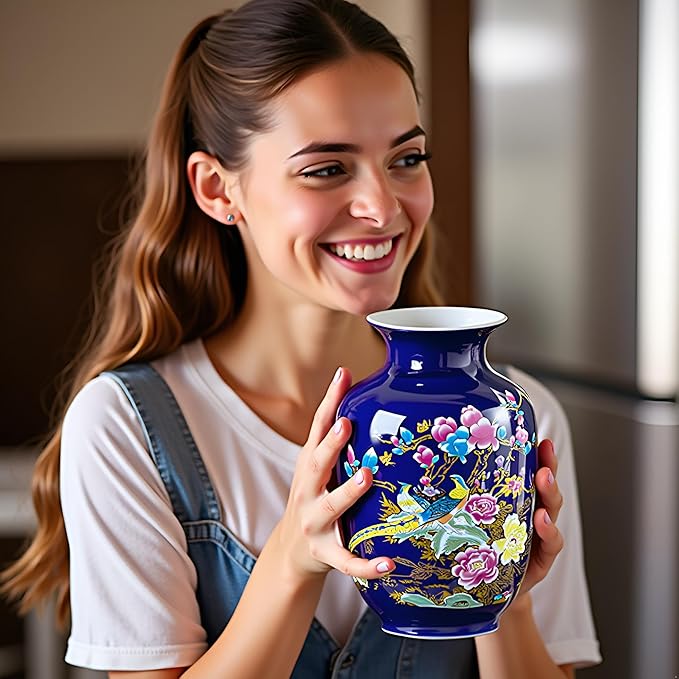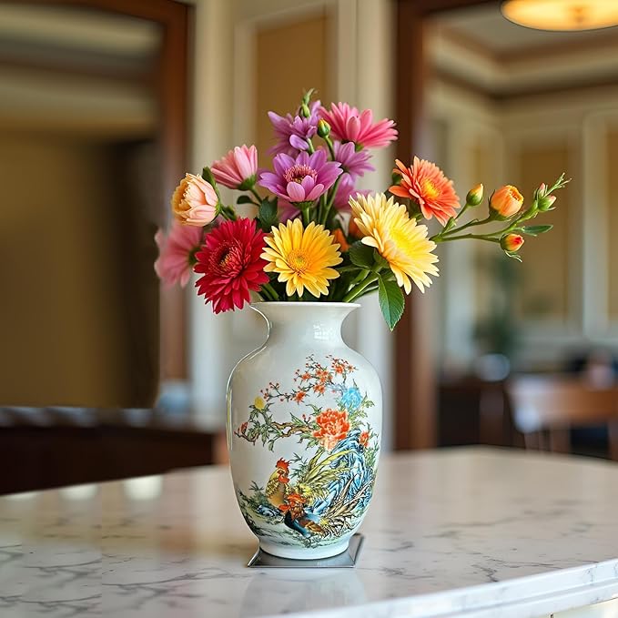 MTME Porcelain Figurines, Jingdezhen Peacock Decorative Flower vase, Home Decor, Wedding Gifts, Aesthetic Sculpture Home décor (Pheasant B)