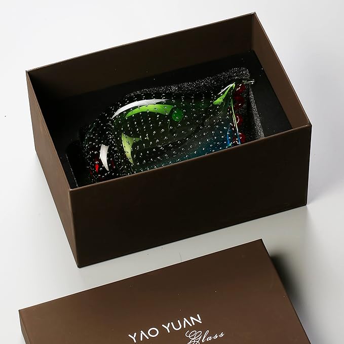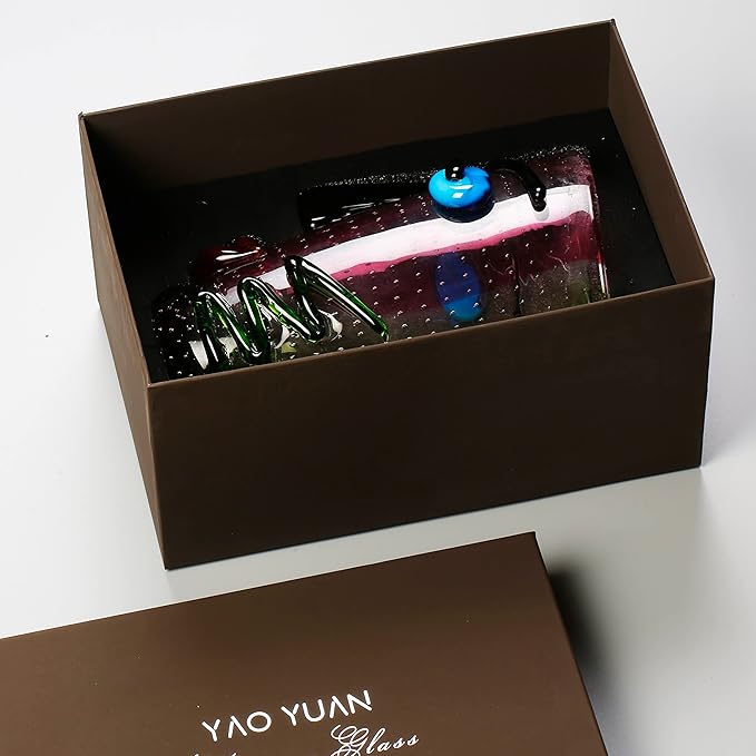 Yao Yuan Murano-Style Art Glass Vase with a Face - 12.6" Tall Mouth-Blown Artistic Sculpture with Vibrant Colors & Accents - Rich Colored Home Décor -