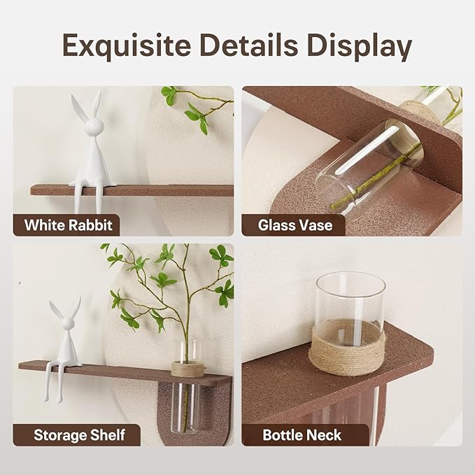 Troartos 3D Textured Neutral Abstract Wall Art with Vase, White and Brown Wall Decor with Rabbit Decoration, Minimalist Geometric Artwork for Living Room Hallway Dining Room Bedroom Office, 24x24 In -
