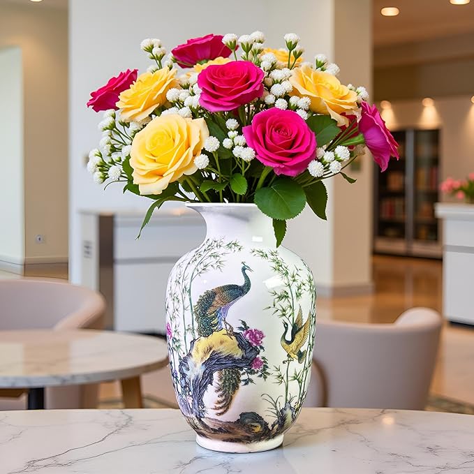 MTME Porcelain Figurines, Jingdezhen Decorative Flower vase, Melon Sr. Home Decor, Wedding Gifts, Aesthetic Sculpture Home décor (Peacock in Love) -