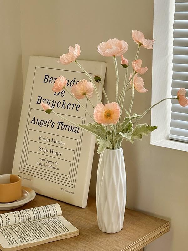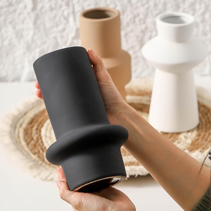 hjn White Flower Vase- Ceramic Vase for Decor, White vase for Flowers, Modern Vases for Living Room/Home Decor Accents/Entryway/Mantel/Bookshel -