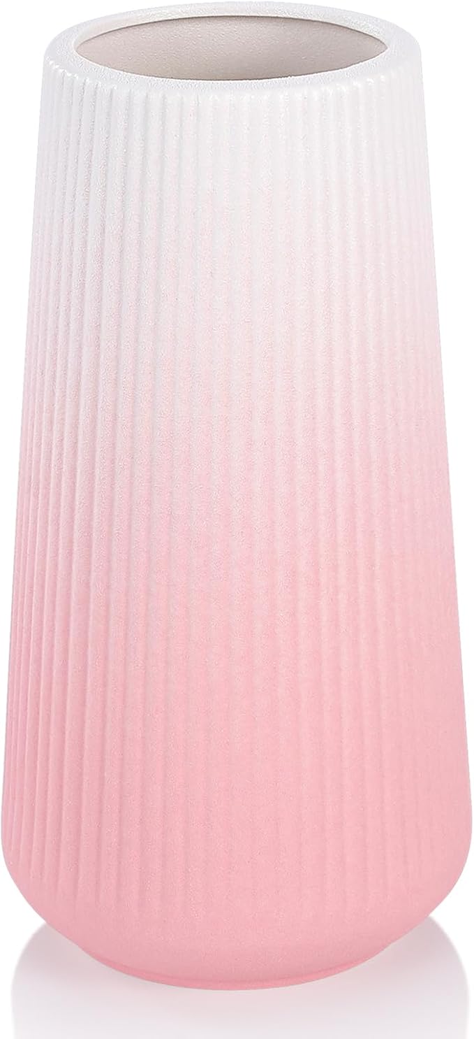 Gradient Pink Ceramic Vase, GUKJOB Small Cute Flower Vase for Pampas Grass, Home, Living Room, Dining Table, Farmhouse, Office Decor, Bedroom, Table, and Kitchen Shelf (Gradient Pink) -