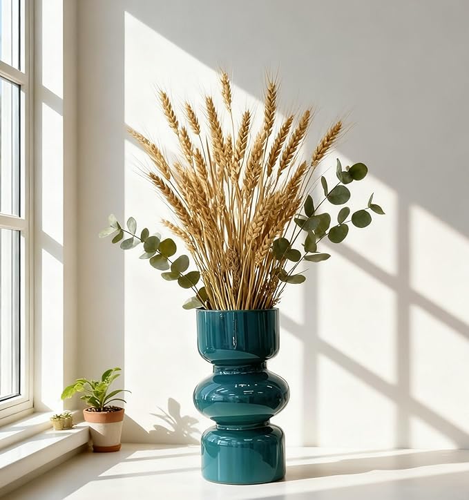 Blue Ceramic Vase, GUKJOB Small Cute Flower Vase for Pampas Grass, Home, Living Room, Dining Table, Farmhouse, Office Decor, Bedroom, Table, and Kitchen Shelf (Blue) -
