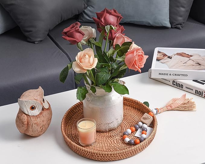 Quoowiit Ceramic Rustic Farmhouse Vase, Distressed Decorative Flower Vase for Home Decor, Ideal Shelf Decor, White Boho Vase for Living Room Bedroom Kitchen Office Decor Centerpiece Table Decorations -