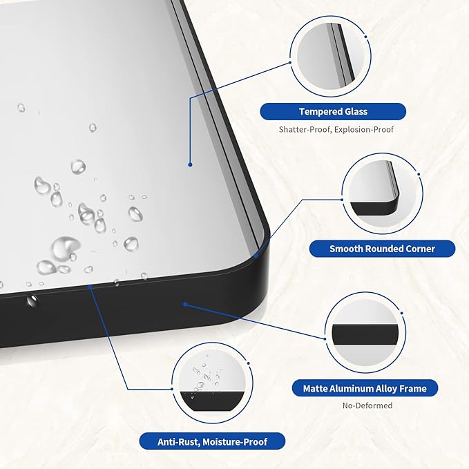 WEER 36X30 Inch Black Metal Framed Bathroom Mirror, Matte Black Bathroom Vanity Mirror, Rectangular Black Wall Mirror for Bathroom, Tempered Glass, Rounded Corner, Hangs Horizontal or Vertical -