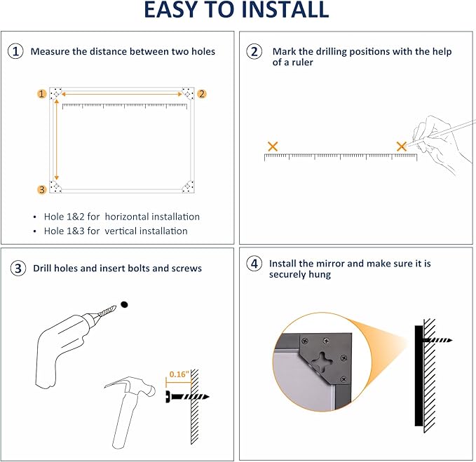 WEER Black Framed Mirror, 28X36 Inch Matte Black Wall Mirror for Bathroom, Rectangular Black Bathroom Vanity Mirror, Tempered Glass, Anti-Rust, Hangs Horizontal or Vertical -
