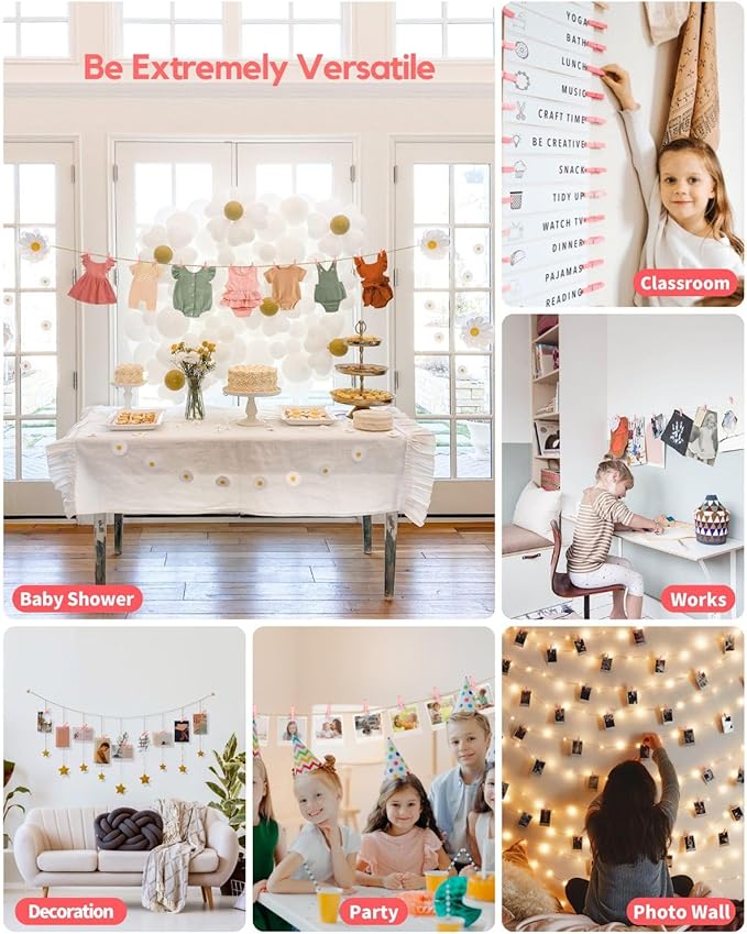 • 🌲【NATURAL WOOD & PAINT】 - All clothes pins wood are made of natural wood, high-quality and lightweight to use. The vivid color mini clothespins for photos, nice home decoration for life. The clips for pictures have a sturdy construction, made with non-rusting wire springs, it will give you years of use. What's more, the painting is eco-friendly and not easy to fade.