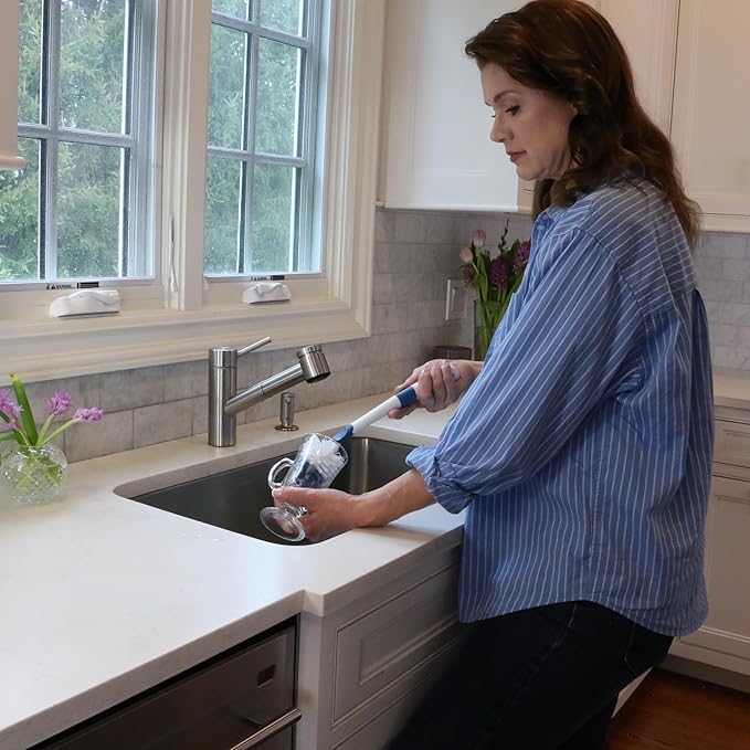 • Extra Scrubbing Power: The extra-long handle allows you to reach deep inside pitches, vases, carafes, and tall bottles so no spot gets missed, while the flat head design easily cleans corners