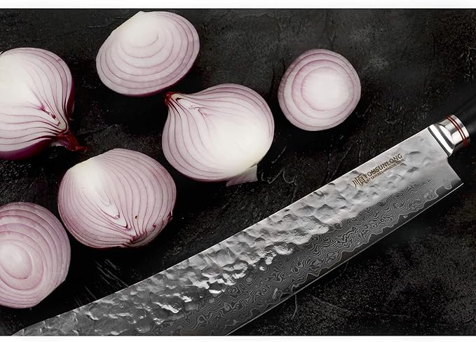 YOUSUNLONG Breaking Knife -14 Inch Extra Long Blade - Super Bull Nose Butcher Knife - Japanese Damascus High Carbon Stainless Steel -Razor Sharp Blade - Ergonomic Ebony Handle With Sheath
