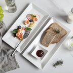 • Elegant Plate: The white rectangular plate is made of high quality ceramic, non-toxic, lead-free, and odorless. The ceramic plate is hard, sturdy, resistant to breakage and scratching, and has a long service life. Our ceramic trays are sturdy and safe enough to fit in dishwashers, refrigerators, microwaves, and ovens.